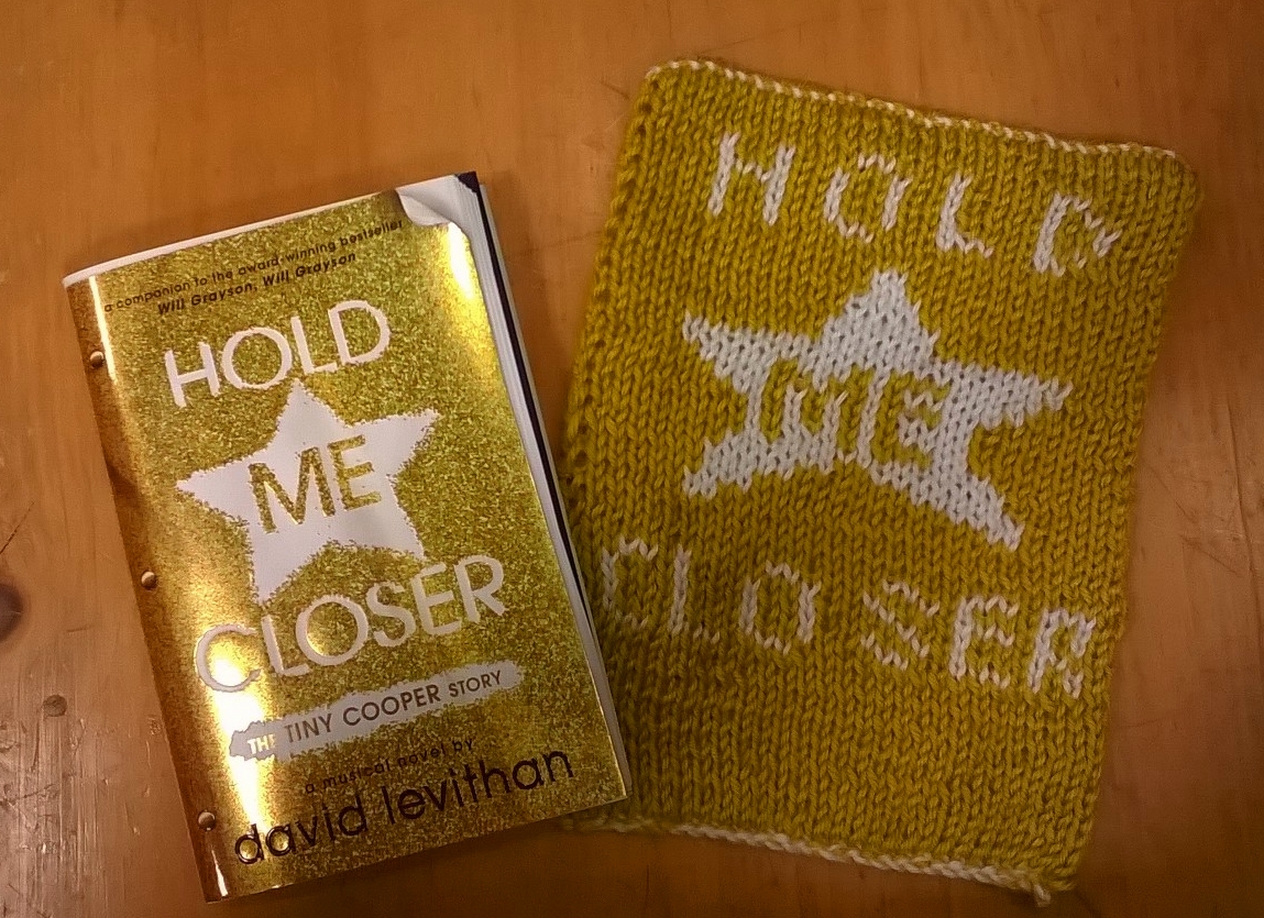 Today’s block comes from a book we reviewed a few weeks ago. It’s been our most popular review and it has a lovely cover, so we couldn’t wait to add it to our blanket. It’s Hold Me Closer by David Levithan!